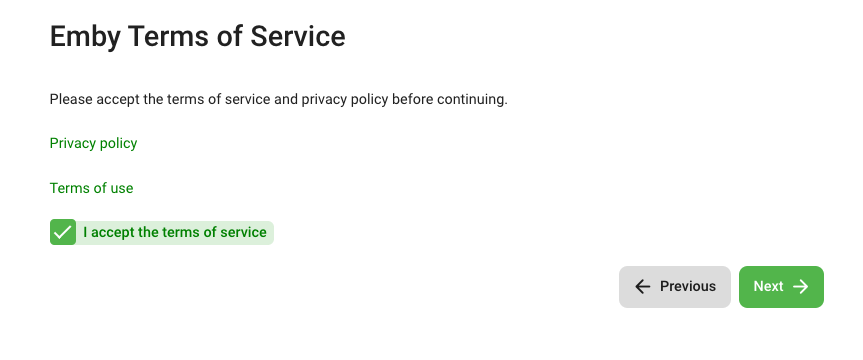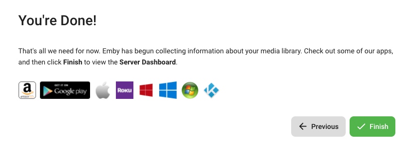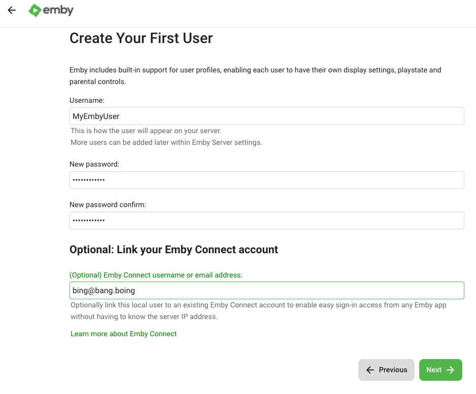 New Password: A strong password you'll use to log into Emby