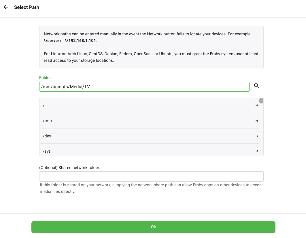 /mnt/unionfs/Media/TV. Click OK.