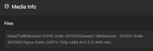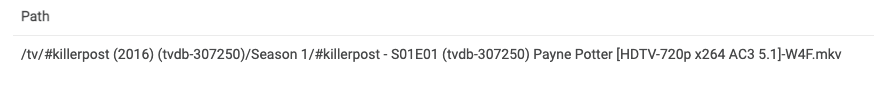 "Please scan this folder: /tv/#killerpost (2016)/Season 1/; it's in library 12."