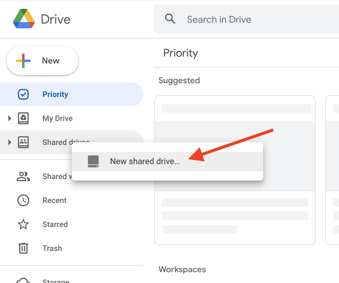 2. Right-click on "Shared Drives" and choose "New shared drive..."